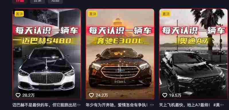 几乎这类科普视频流量都还不错,还有类似的“每天认识一种草药、“每天读一本书”、“每天认识一位创始人”等等。这次咱们拆解的是“每天认识一辆车”。发了大概60多条视频,收获近20W粉,点赞转发数都还不错。